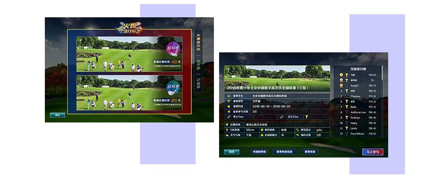定期举办的官方赛事等模块,体验一站式互联网高尔夫